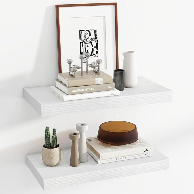 24 Inch Floating Shelves, 12 Inch Deep Floating Shelves for Wall, Floating Shelf with Invisible Brackets, Deep Shelves for Bathroom, Bedroom, Living Room, 2 Pack, White