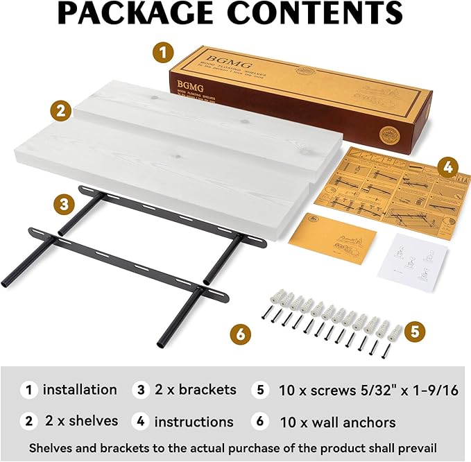 - NO SAGGING! MORE PERFECT FOR AMERICAN WALLS : BGMG premium wood shelves are built to last and hold up to 50 pounds using our smart brackets designed specifically for American wall studs, which are typically 16 inches apart! The brackets warp slightly upward to prevent the shelves from sagging and falling off