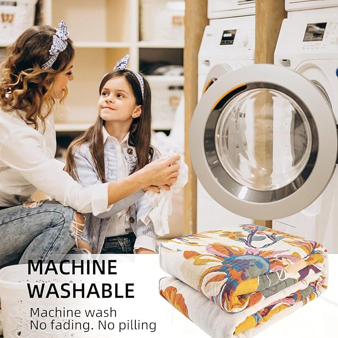 Boho Throw Blanket for Bed - 100% Pure Cotton Ultra Soft Rustic Quilt - Farmhouse Decor Bed Blankets, All Season Rustic Throw for Sofa Couch Chair(60"×80", Floral)