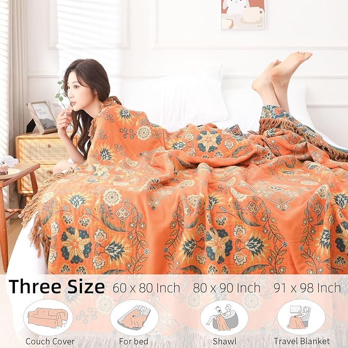 - ❥MULTI-PURPOSE: This multi-purpose blanket is perfect for use as a bed blanket, bedspread or lightweight comforter to keep you warm in the office or while traveling, it can also be used to decorate your room as a cover blanket for your sofa or chairs, and these different colors and print elements will bring bohemian and rustic style to your space.