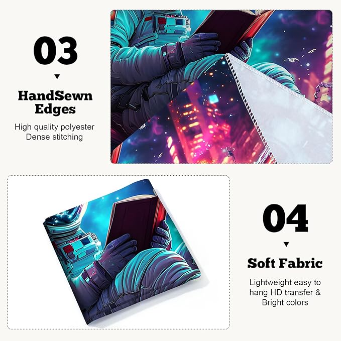 BVBOX Astronaut Space Blacklight Tapestry 79"x59", UV Reactive Astronaut Reading Universe Galaxy Planet Glow in Dark Tapestries, Black Light Neon Upright Poster Wall Hanging Backdrop Decor for Bedroom Living Room