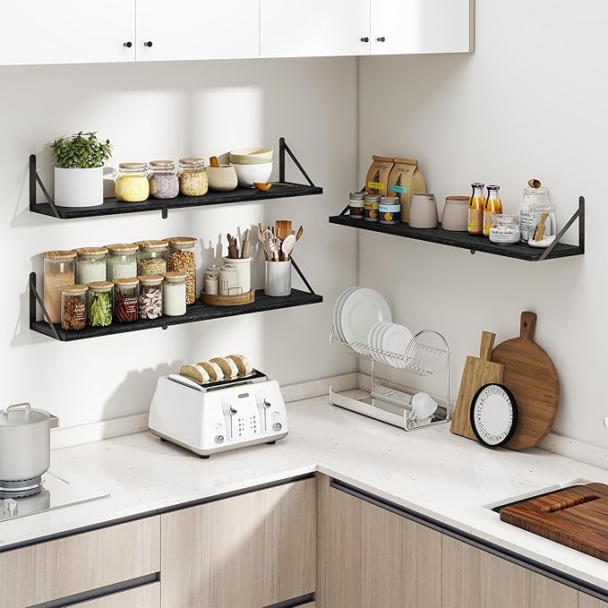 Heimlove 36 Inch Black Floating Bookshelves Set of 3,Heavy Duty Wall Mounted Bookshelves,Bookshelf for Living Room,Bedroom,Kitchen,Laundry Room Storage & Decor