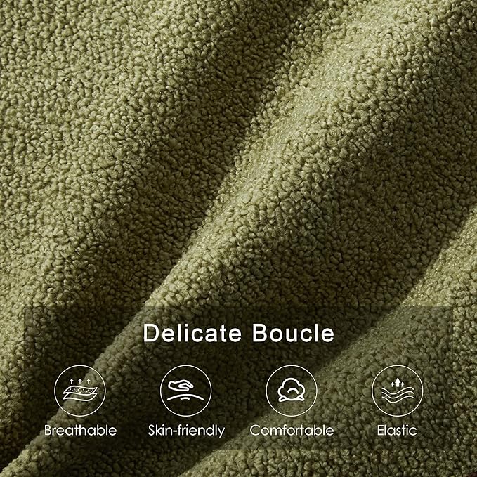 63" Bedroom Bench, Upholstered Entryway Bench, Modern End of Bed Ottoman with Solid Wood Legs and Adjustable Foot Pegs for Entryway, Dining Room and Living Room, 440lbs (Green Boucle)