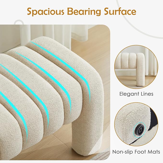 - 【Comfortable Experience】 This bench is made of delicate fabric and filled with high-density foam, providing excellent sitting feeling and comfort, allowing you to sit down or rest your feet after a busy day. Equipped with four adjustable foot pegs to ensure that the bench is stable and not wobbly during use, protect your floor from scratches and bring you a safer experience