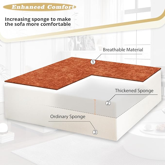 - COMFORTABLE PULL OUT SOFA BED: This chenille sectional couch can be easily converted into a comfortable bed by pulling forward the belt on the hidden drawer part smoothly. The wider and deeper seating space let you and your family getting fully relax on the soft sofa