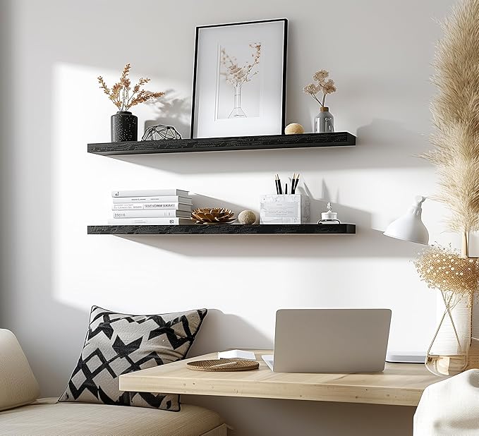 48 Inch Floating Shelves for Wall Rustic Black Wood Wall Shelves for Bedroom Set of 4