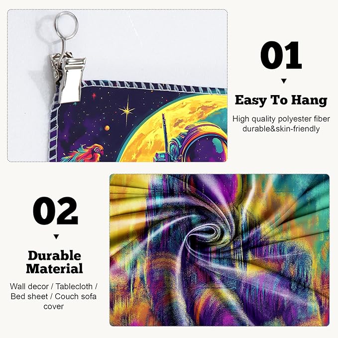 - Tapestry Material: This psychedelic tapestry is made of decent quality polyester fabric, soft touch and durable, fast drying and non-fading.