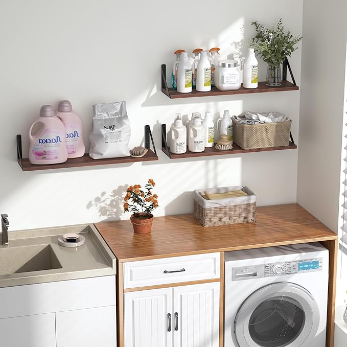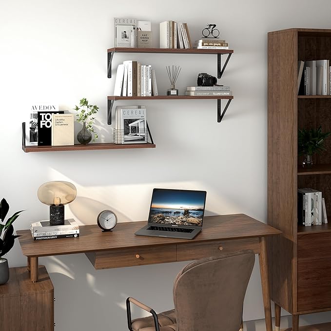 Heimlove Floating Shelves for Wall, 24 Inch Long Wood Floating Shelves Set of 3, Wall Mounted Hanging Shelf for Bathroom Bedroom Kitchen, Walnut