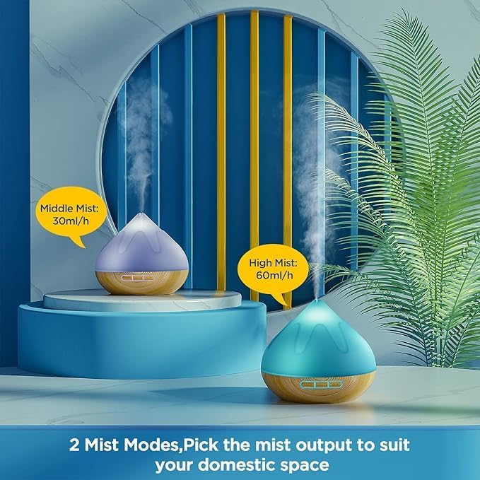 - LARGE CAPACITY AROMA DIFFUSER: Our essential oil diffuser capacity is 500 ML; it is perfect for large rooms; this diffuser is also includes 7 ambient light chose to create a relaxing atmosphere to your room and make your life more colorful.