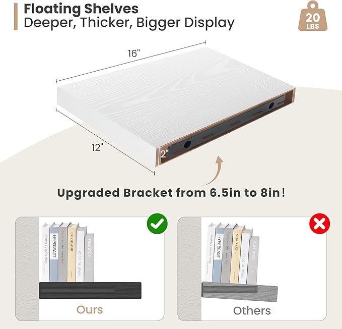 - Sturdy and Effortless Assembly- Includes all necessary hardware to make these floating shelves easy to assemble. We also provide you with detailed install instructions for you to install the shelves in a few minutes.