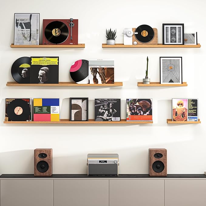 - Picture ledge Shelf for Walls: If you have dozens of pictures but don't know how to display them, Heimlove picture ledge shelves(especially large size) for walls are perfect! With our hanging shelves, store and display different types and sizes of photo frames in one place with no worries of falling off.