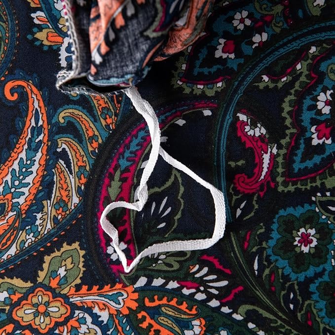 ABREEZE Luxury Vintage Black Duvet Cover Sets Damask Paisley Bedding Set Retro 100% Brushed Cotton Zipper Closure Bedding Collection Cal.King