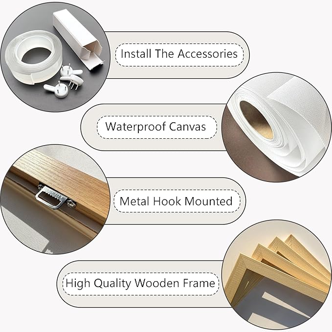 - Nature wall Art: Each piece comes pre-stretched on a solid wooden frame with pre-installed D-ring hooks and hanging accessories, making it easy to hang and instantly refresh your walls.