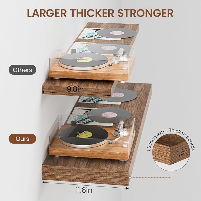 - Extra Deep Floating Shelves: Measuring 11.6” D x 35.4” W x 1.5” H, these shelves are crafted for maximum depth and durability. The spacious 12” depth gives you plenty of room for stylish display, organized storage, and decorative accents. Perfectly suited for your bathroom, kitchen, or living room, they enhance both function and flair in any space!