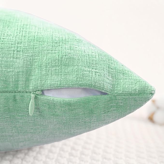 CaliTime Throw Pillow Covers Decorative 18 X 18 Inches Pack of 2 Cozy Chenille Cushion Cases for Couch Sofa Bed Living Room Home Grey Green