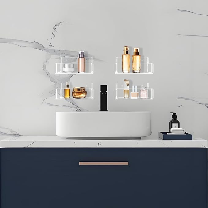 Acrylic Spice Rack Wall Mount-6 Inch, Clear Spice Shelf Storage Holder, 4 Pack Hanging Seasoning Rack Organizer for Cabinet Door, Cupboard or Wall Kitchen (Adhesive or Screw)