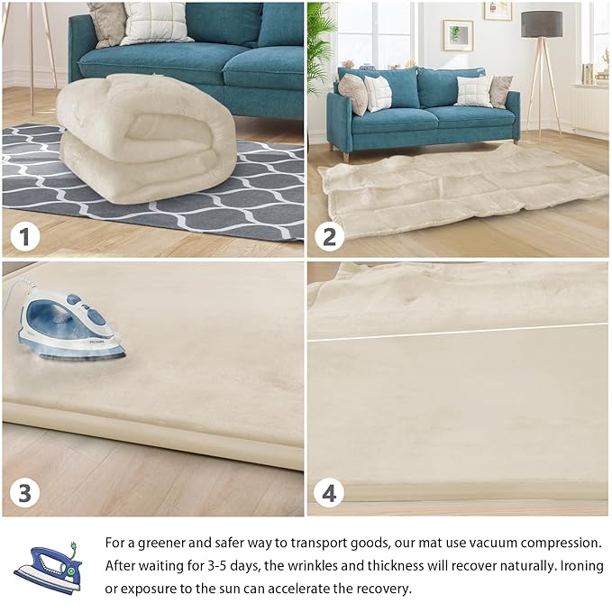 - đHOW TO CARE FOR YOUR MAT:When you open the package,it may be wrinkled,very flat and inelastic.Don't fret - this is normal! As long as it is left for 3-5 days, the mat will naturally regain its thickness and elasticity. we recommend steaming or ironing it to speed up recovery. After you have completed the steaming/ironing, your thick floor padded mat should rebound and be ready to use!