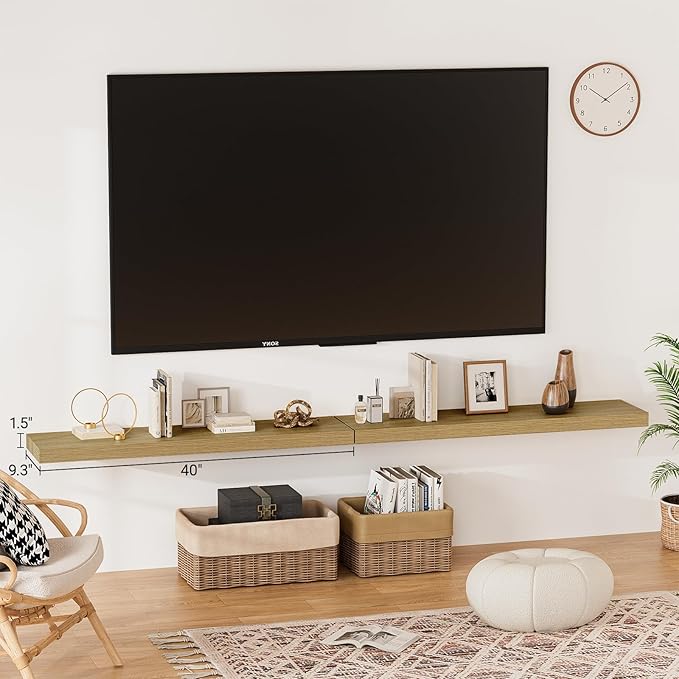 - 【Modern Rustic Look】Our floating shelves for wall are made from durable engineered wood,which blends well with modern and rustic farmhouse wall decor alike.The 40 inch floating shelves is available in colors & sizes,perfect for storing books,plants,collectibles,etc..