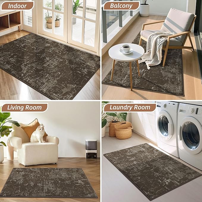 BEQHAUSE Dirt Trapper Door Mat 24"x36" Non-Slip Door Mats Washable Entryway Rugs Stain Resistant Doormat Absorbent Welcome Floor Mat for Front Back Door, Muddy Wet Shoes & Paws,Brown