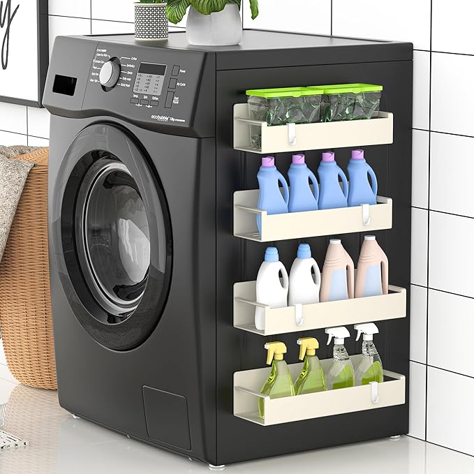 4 Pack Magnetic Spice Rack Organizer for Refrigerator and Oven, Cream White Fridge Organizers and Storage for Kitchen