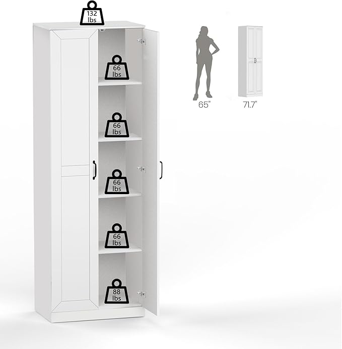 71" Tall Pantry Cabinet/Storage Cabinet, Wood Cupboard with 2 Door and 3 Adjustable Shelves for Kitchen, Dining Room, Living Room, Bathroom (Style 2)