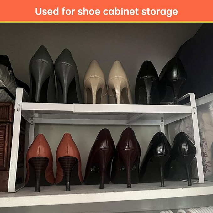 Cabinet Shelves Organizer for Kitchen 11", Expandable Shelf with Adjustable Length, Metal Countertop Organizer, Fits Pantry, Over the Sink, Spices, Microwave & Dishes Storage, White (2 Pack)
