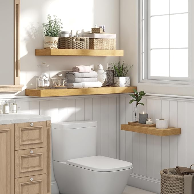 Heimlove 48" Floating Shelves for Wall,10 Deep Rustic Wood Storage Wall Shelves with Heavy Duty Brackets for Bathroom,Bedroom,Kitchen,Living Room,Office,Set of 2,Oak Color