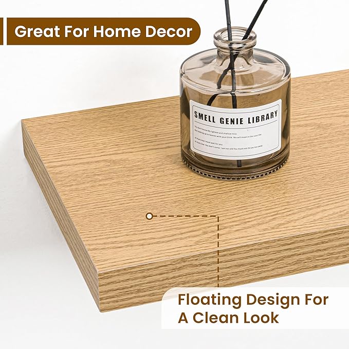 - Timeless Design for Any Room: Elevate your décor effortlessly! The classic retro texture of these floating shelves complements bathroom, bedroom, kitchen, living room or even office space. Neutral tones blend with existing furniture, adding warmth without clashing
