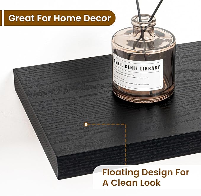 36 Inch Floating Shelves, 9.3 Inch Deep Rustic Wall Shelves - Extra Deeper Wall Mounted Storage Shelves for Bathroom, Kitchen, Living Room (Black, Set of 2)