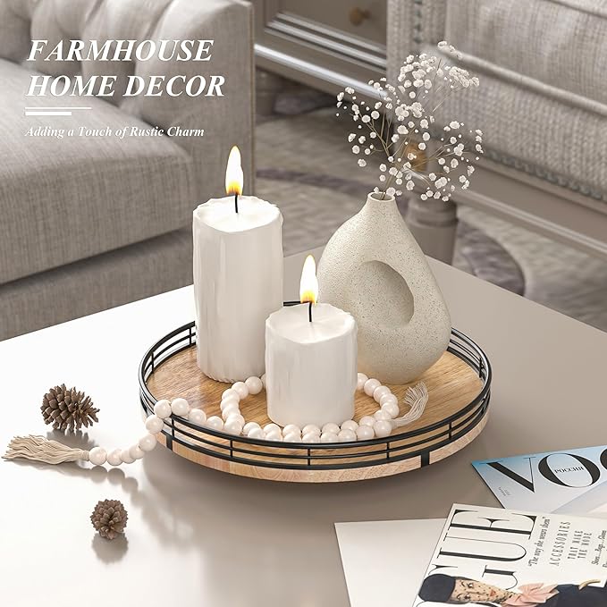 - PREMIUM MATERIAL: Our farmhouse lazy Susan organizer is made of natural solid oak wood and strong metal, sturdy, durable and premium quality. This wooden turntable organizer is a game-changer for keeping your kitchen organized. The farmhouse oak finish gives it a rustic, charming look that will fit perfectly with your kitchen decor.