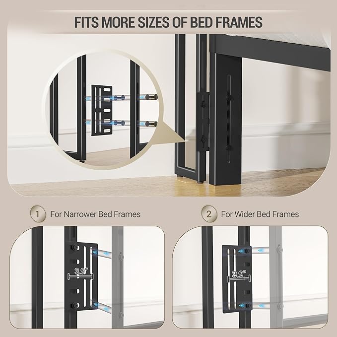 - Large Storage Space & Sturdy Structure: The headboard is made of selected particleboard and sturdy metal frame, without shaking or noise. And the top of the headboard is equipped with 3-tier adjustable storage space, which can hold books, phones, clocks or some personal belongings and each has a load-bearing capacity of 66 lbs. The height of the storage space can be adjusted up to 9.5 inches to meet various storage needs