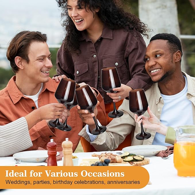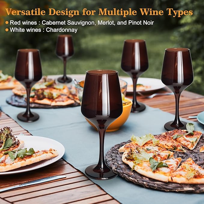 - 【Versatile Design for Multiple Wine Types】The versatile design of Glazvia Brown goblets glassware makes them suitable for a variety of wines, including red wines like Cabernet Sauvignon, Merlot, and Pinot Noir, as well as white wines like Chardonnay.