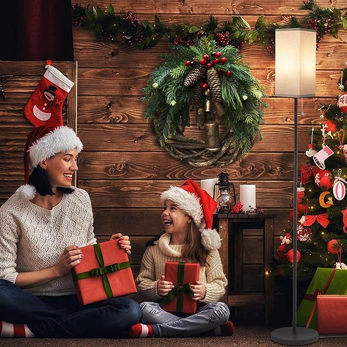 Ambimall Floor Lamp with 3 Color Temperatures Bulb & Pull Chain Switch, 64" Standing lamp, Beige Square Shade & Black Pole