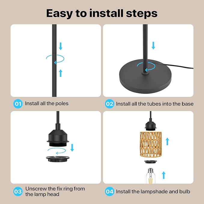 - 【Zero Hidden Costs】 3 premium E26 bulbs included—save $15+ vs buying separately. The versatile socket works with dimmable/color-changing bulbs, future-proofing your boho floor lamp