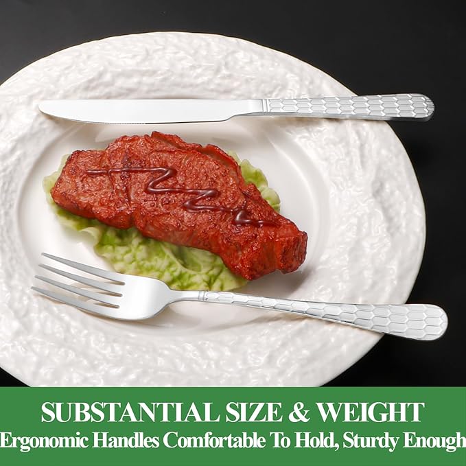 - WONDERFUL WORKMANSHIP AND FUNCTIONAL---Our utensils set is made of multiple mirror polishing treatment, silverware set with Water Cube handle design Each piece is beautifully adorned with a delicate Water Cube pattern,edge smooth , elegant and classical appearance, adding to the beautiful experience of everyday dining.