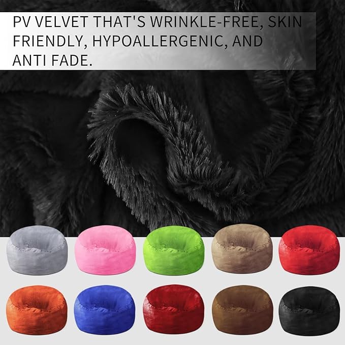- 【Comfy,Durable,And Easy To Care】Our Giant Bean Bag Cover Is Made Of Super Soft, Furry Pv Velvet That'S Wrinkle-Free, Skin Friendly, Hypoallergenic, And Anti Fade. It Features Double-Stitched Seams And A Two Layer Zipper For Enhanced Durability And Long-Lasting Use.
