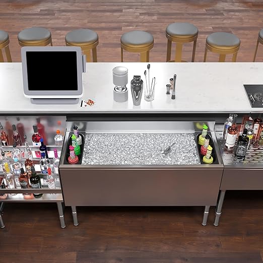 AmGood 18.5 in. x 48 in. Underbar Ice Bin with Sliding Lid | NSF | Stainless Steel Ice Chest with Sliding Lid