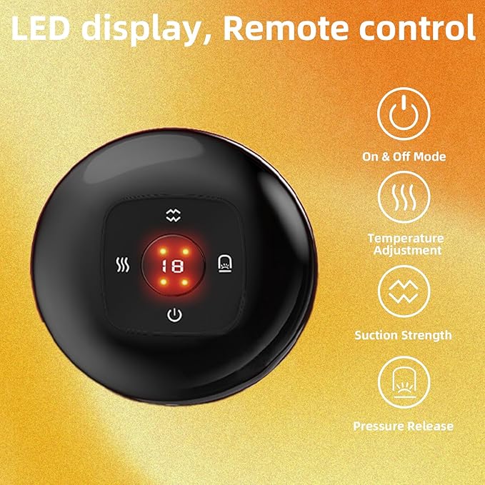 - 【5-in-1 SMART CUPPING THERAPY MASSAGER】 Electric Cupping Massager featuring 12-level suction and heating adjustments.Equipped with a temperature range of 38°C to 50°C(100.4°F to 122°F). Cupping set combines cupping, dynamic cupping, red light therapy, heat therapy, and cellulite reduction in one.