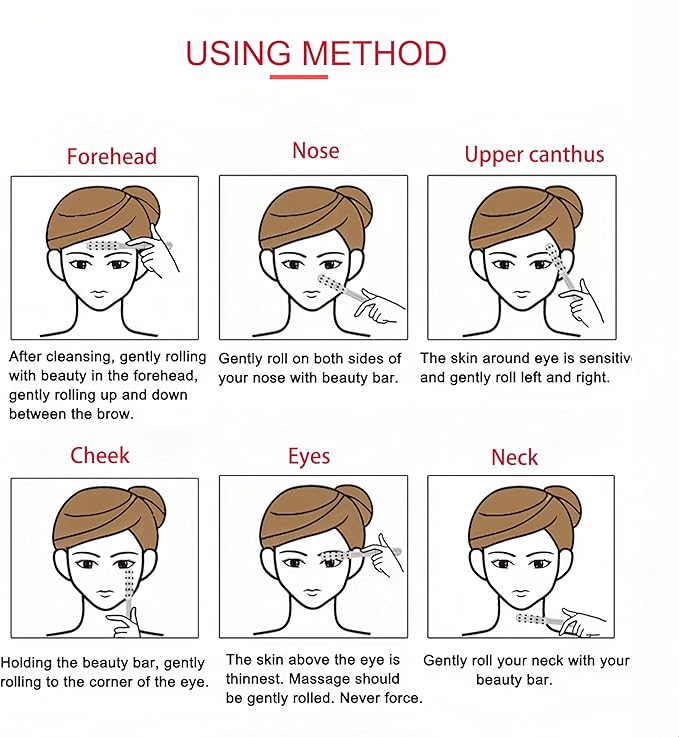 - 1. Ergonomic Design for Precision Use:Slim handle with rounded ends fits comfortably in hand and glides smoothly along facial contours, offering better control and targeted massage.