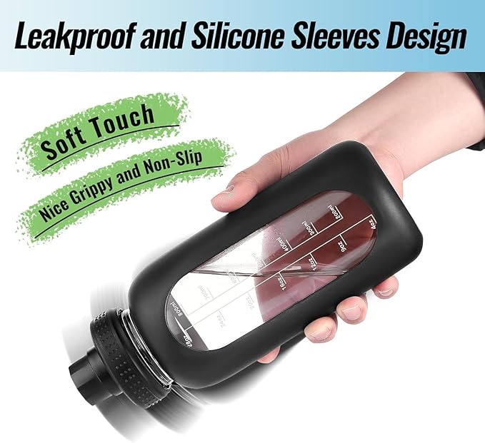 - WIDE MOUTH WATER BOTTLE: our 32 oz glass water bottle makes you easy to add ice cubes, tea bags, juicing or smoothies, also easy to clean it, food-grade silicone sleeve adds the glass tumbler a soft touch, nicely grippy and non-slip, it will be your perfect everyday companion
