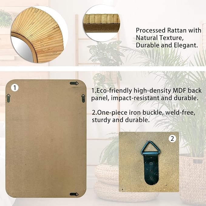 - 【Versatile Boho Design】With its minimalist silhouette reimagining Boho chic, this vanity mirror transcends spaces. Gracefully anchoring bathrooms to living rooms, it blends artisanal warmth with contemporary clarity – a functional centerpiece that doubles as curated wall art.