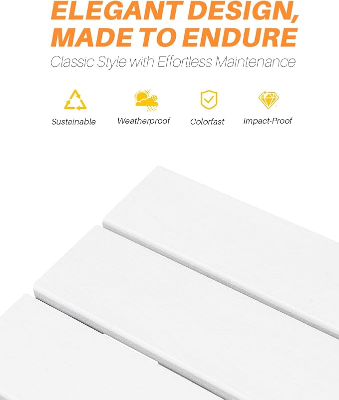 - Weatherproof HDPE Build: Crafted from military-grade HDPE with lifelike 3D wood grain, this pearl patio dining table is waterproof, UV-resistant, and won’t crack or fade, ensuring long-lasting beauty indoors or outdoors. The food-safe surface lets you serve meals worry-free, while the realistic wood texture elevates decks, balconies, and dining rooms alike.