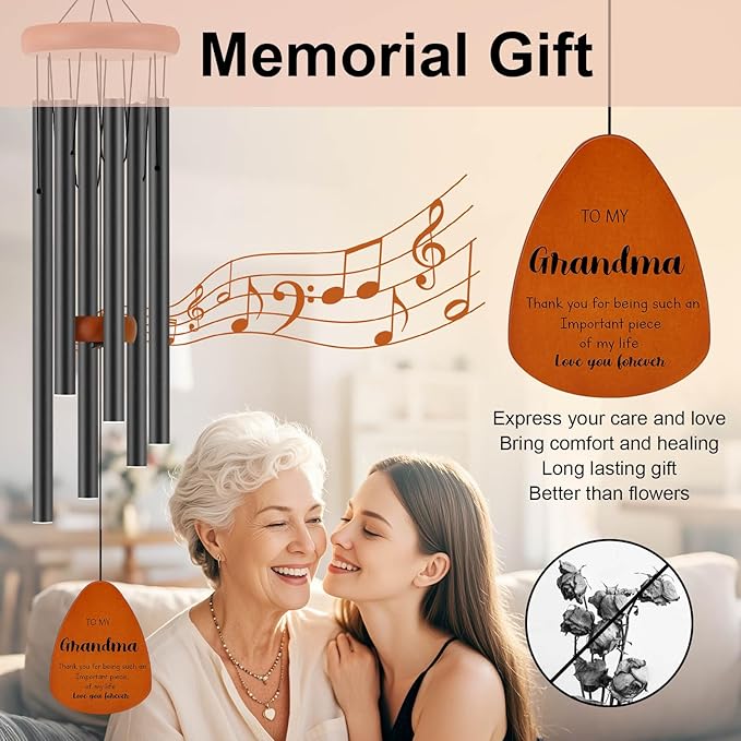 - Soothing Sounds for Relaxation: With its precise design and six thick-walled aluminum tubes, this wind chime gift produces soothing melodies, creating a serene atmosphere that promotes relaxation and tranquility. It's a perfect way to express your love and strengthen your bond with your grandma.