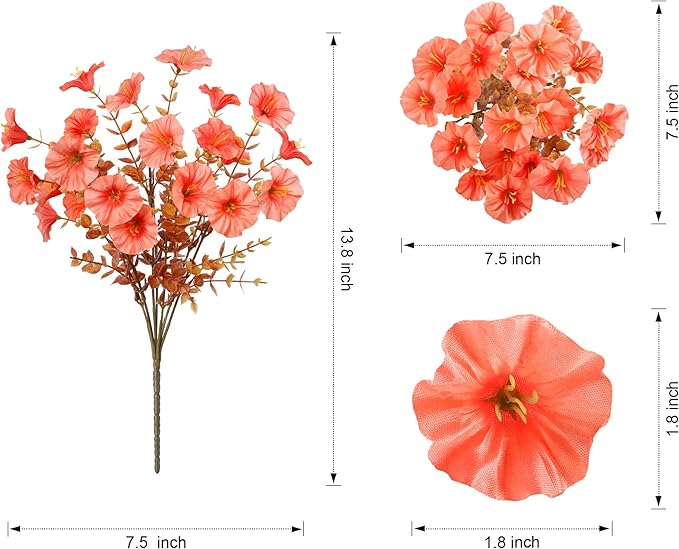 - Package Include: 12 bundles of artificial outdoor morning glory flowers with fall eucalyptus leaves. Pot not include.