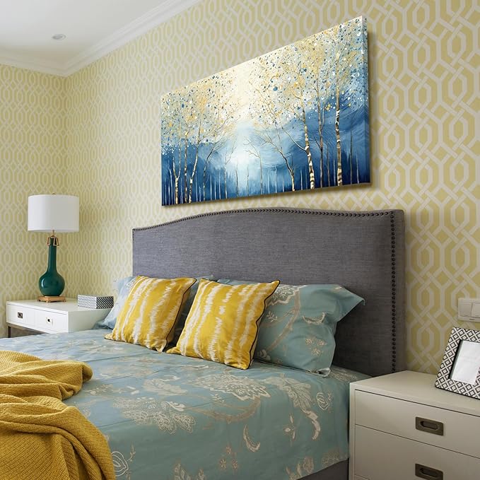 amatop Large Abstract Wall Art for Living Room Modern Tree of Life Canvas Art Print Nature-Inspired Navy Blue Wall Decor Landcape Artwork Birch Forest Picture Bedroom Office Dining Entryway 48x24 Inch