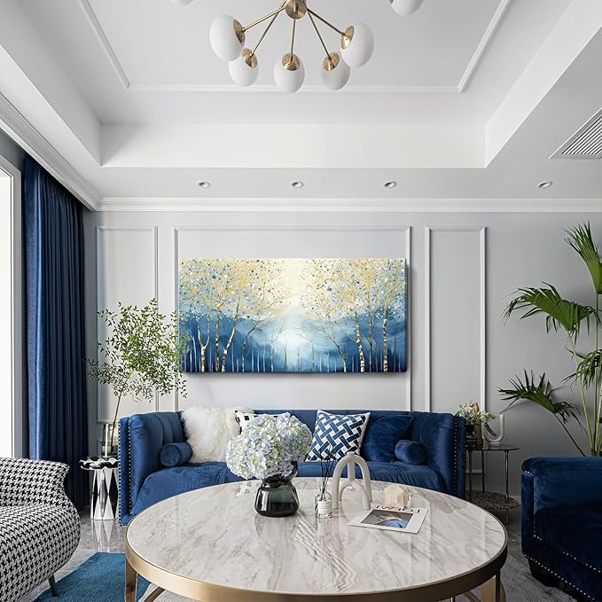 amatop Extra Large Wall Art for Living Room – Modern Forest Landscape Picture Abstract Nature Tree Scenery Canvas Art Prints Blue Wall Decor Oversized Horizontal Birch Artwork Bedroom Office 58x29 Inch