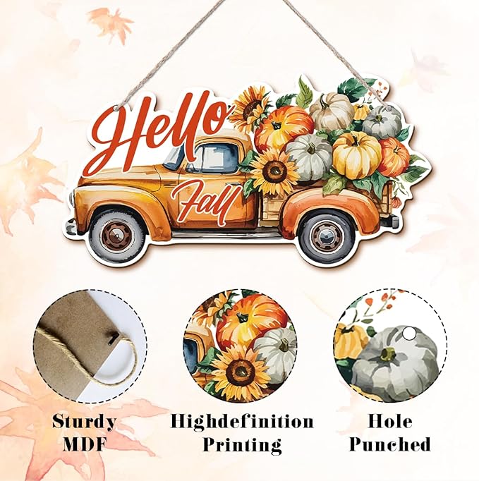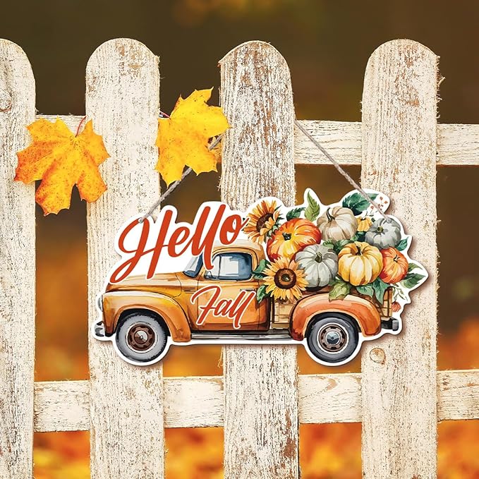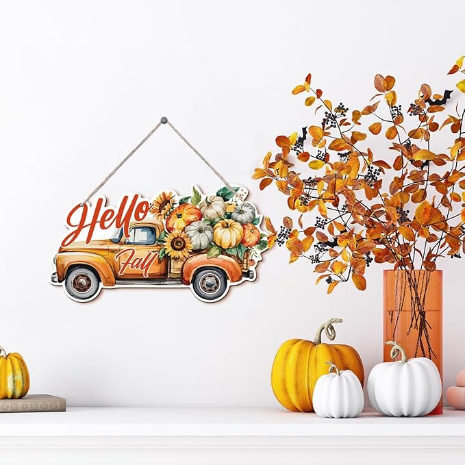 Hello Fall Wood Hanging Truck Decoration, Autumn Wooden Signs, Rustic Thanksgiving Decoration, Home Interior And Exterior Decor, Autumn Harvest Thanksgiving Home Decor