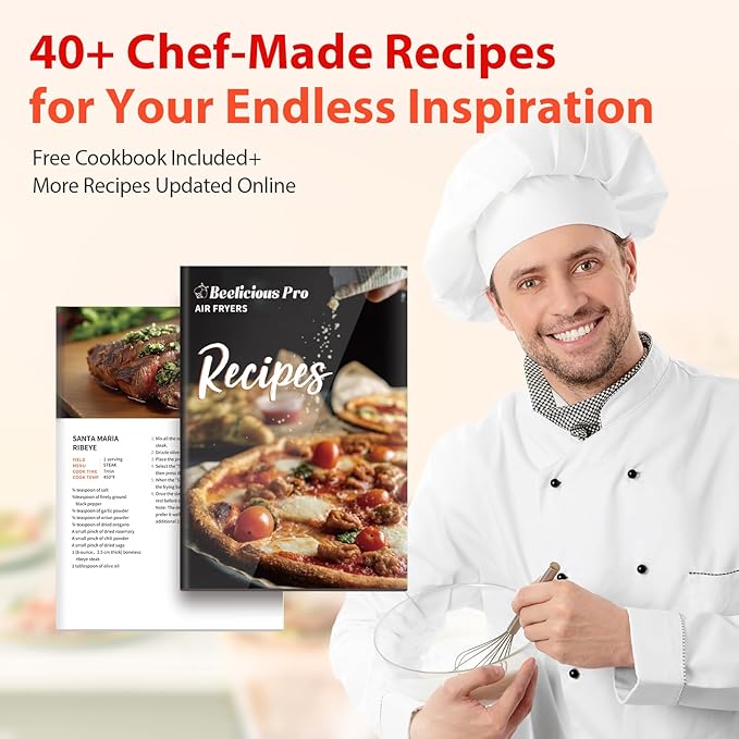 - 【Endless Options for Your Inspiration】Easily start cooking unlimited types of food through 8 modes setting, wide time & temp control range and 40+ Chef-Make Recipes Included. (Air Fry,Roast,Bake,Broil,Fries,Steak,Reheat,Dehydrate with range 1~60mins & 100℉~450 ℉). Get Limitless Meal Options with Our Smart Digital Air Fryer!