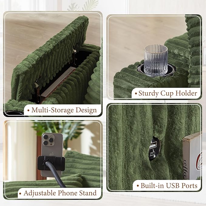 - Smart Storage Solutions — Hidden Compartments in Armrests: Keep your space clutter-free with discreet storage compartments under the armrests. Perfect for stashing remotes, books, or blankets, this feature enhances your chairs living room area by combining style with smart practicality.