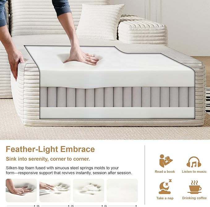 108" Sectional Couches for Living Room Modern Modular Sofa with L-Shape Couchs Upholstered Boneless Couch Deep Seat Sectional Couch with Chaise (White, Right Facing Chaise+2Seaters)